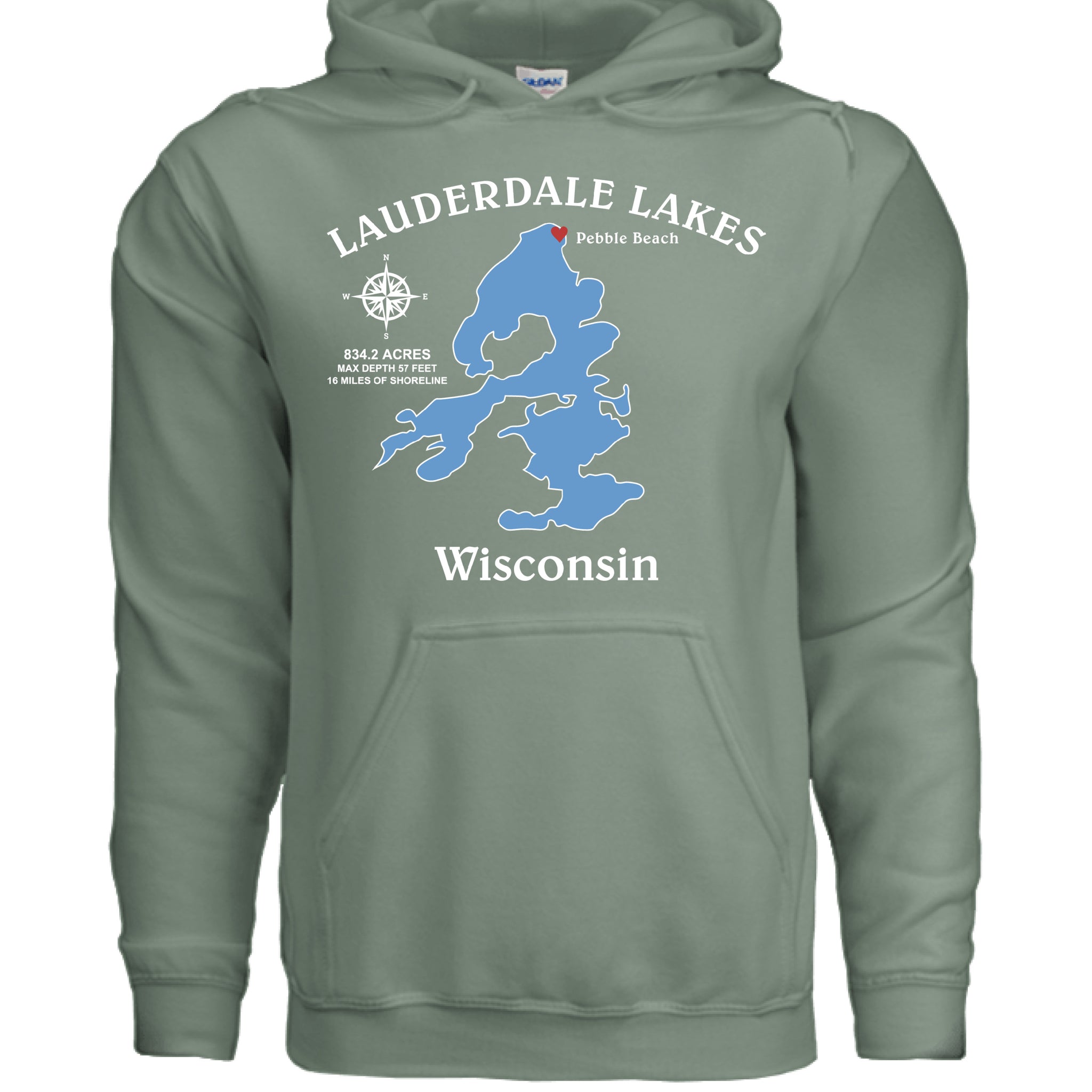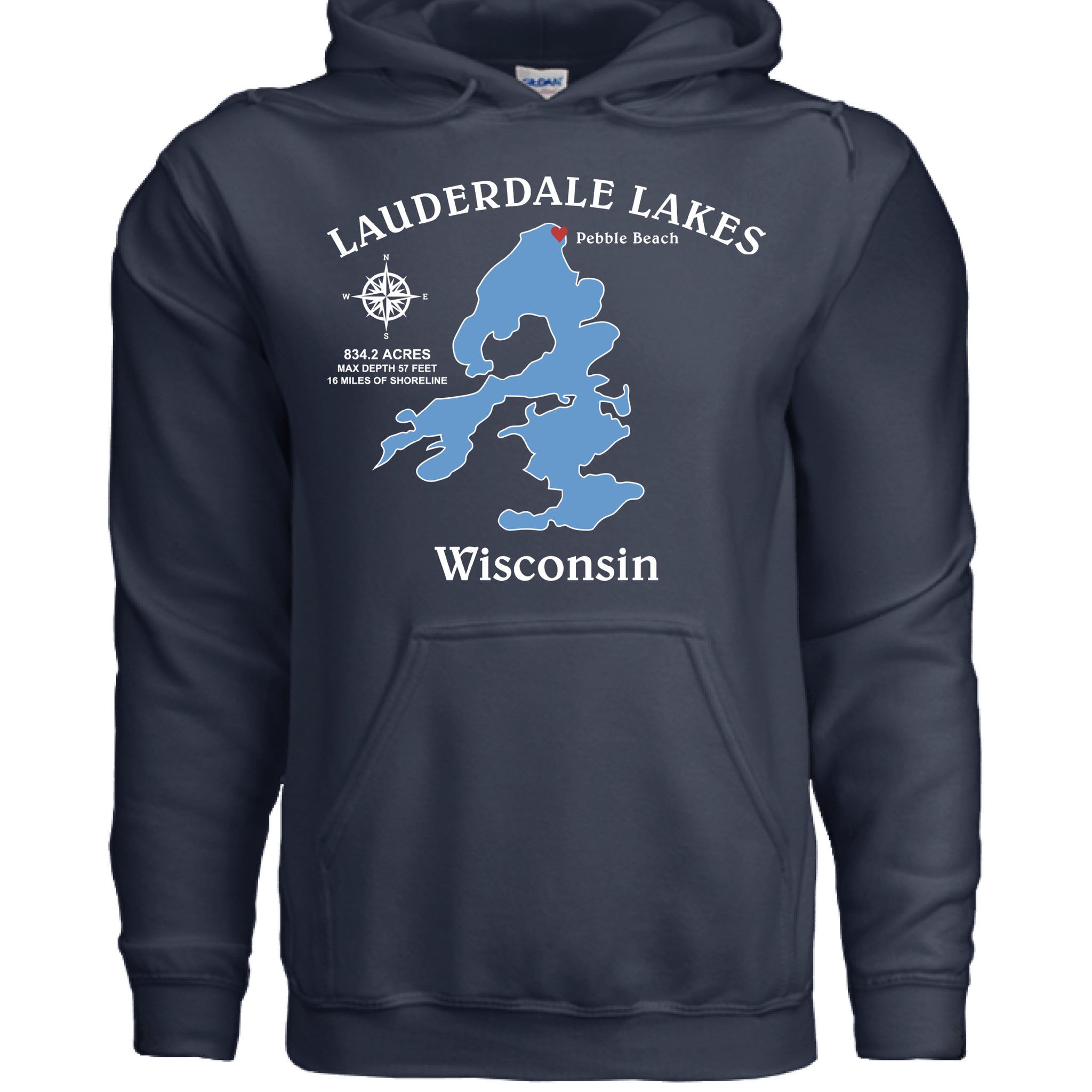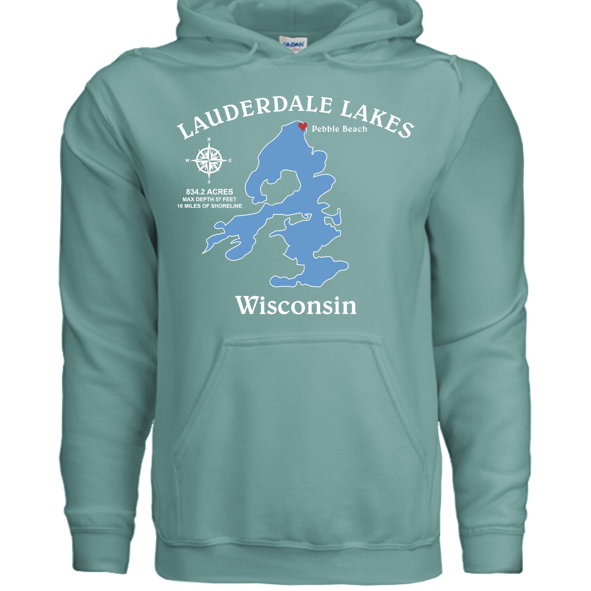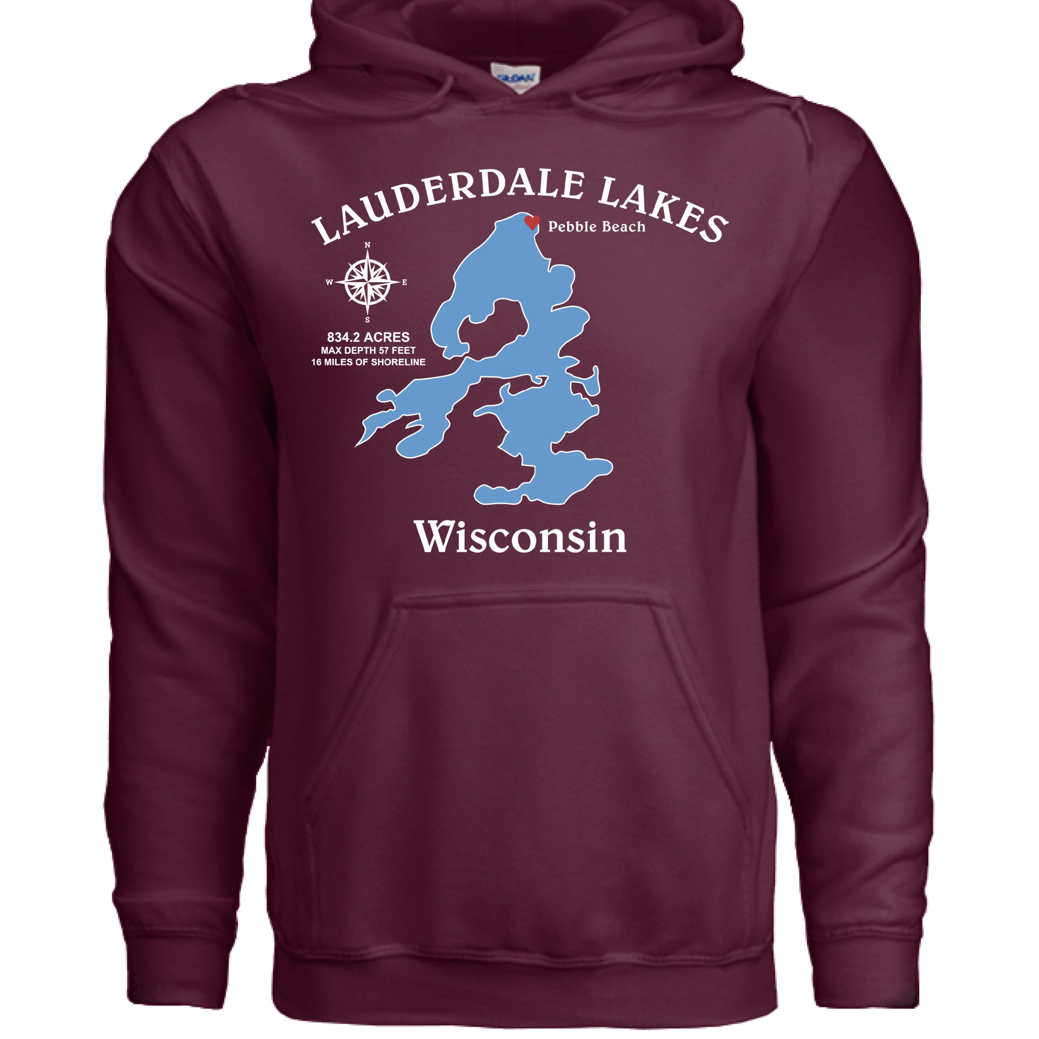 Lauderdale Lakes, Wisconsin Compass Hooded Pullover Sweatshirt